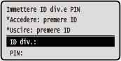 Se è stato impostato l'ID amministratore, la schermata di accesso viene visualizzata per le operazioni che richiedono i privilegi di amministratore. Inserire PIN e ID amministratore per accedere.