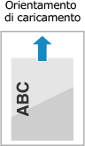 Per impostazione predefinita, la direzione di caricamento della carta e il lato di stampa variano a seconda che si desideri stampare su uno o entrambi i lati.