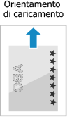Caricare la carta con il lato con il logo (lato su cui stampare per primo) rivolto verso il basso.