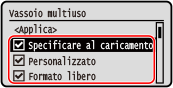 I formati carta le cui caselle di controllo sono deselezionate non vengono visualizzati nella schermata delle impostazioni della carta.