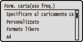 È possibile scorrere la schermata per visualizzare i formati carta (ad esempio buste) non visualizzati sullo schermo.
