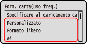 Se si cambia frequentemente il formato della carta, è possibile selezionare [Libero] per ridurre il numero di procedure necessarie per modificare l'impostazione ogni volta. Tuttavia, occorre tenere presente che questa impostazione permette alla macchina di stampare anche in caso di mancata corrispondenza tra il tipo di carta specificato nel driver della stampante e la carta effettivamente caricata nella macchina.