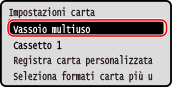 Se si utilizza sempre la stessa carta nel vassoio multiuso, è possibile registrare il formato e il tipo di carta. Ciò evita di visualizzare la schermata delle impostazioni della carta e di configurare le impostazioni.