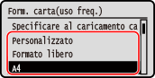 Se si cambia frequentemente il formato della carta, è possibile selezionare [Libero] per ridurre il numero di procedure necessarie per modificare l'impostazione ogni volta. Tuttavia, occorre tenere presente che questa impostazione permette alla macchina di stampare anche in caso di mancata corrispondenza tra il tipo di carta specificato nel driver della stampante e la carta effettivamente caricata nella macchina.