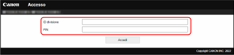 Quando si accede con il Modo amministratore, inserire ID amministratore e PIN amministratore.