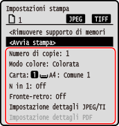 Viene visualizzata la schermata Impostazioni stampa supporto memoria.