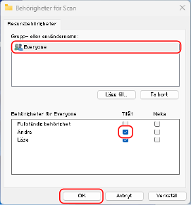 2 | I [Användare] ska du välja [Alla]  [Läs-/skrivbar]. |