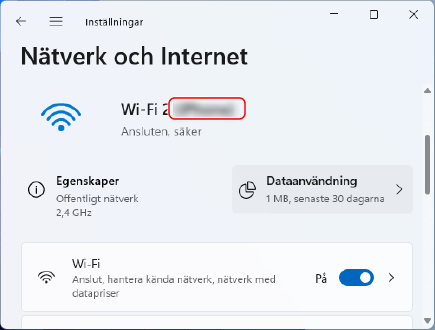 Visa SSID i [Nätverksnamn].