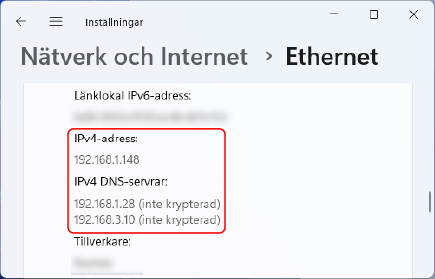 2 | I Egenskaper kan du se IP-adress och DNS-server. |