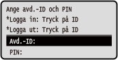 När Hantering av avdelnings-ID används visas följande inloggningsskärm. Ange avdelnings-ID för att logga in. Om PIN-kod används anger du PIN-koden.