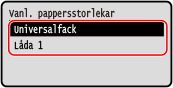 Välj papperskälla och tryck på