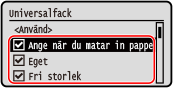 Pappersformat vilkas kryssrutor avmarkeras visas inte på skärmen för pappersinställningar.