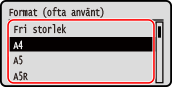 Välj det pappersformat som har fyllts på i papperslådan och tryck på
