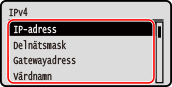 Starta fjärranvändargränssnittetNär du använder en IPv4-adress kan du skicka ett ping-kommando från kontrollpanelen på följande sätt för att kontrollera om enheten kan ansluta till en nätverksenhet.