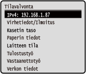 [Näytä IP-osoite] [Kasetin taso]
