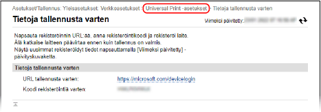 Napsauta etäkäyttöliittymän näytön yläosassa [Universal Print -asetukset].