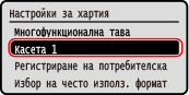 Изберете касетата за хартия, чиято настройка искате да промените, и натиснете