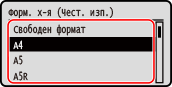 Когато хартията е заредена в пейзажна ориентация, изберете [A5]. Когато хартията е заредена в портретна ориентация, изберете [A5R].