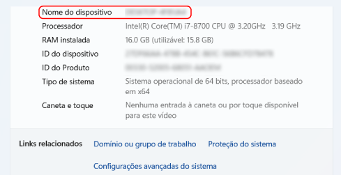 O nome do computador é apresentado em [Nome do dispositivo].