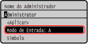 Quando [Modo de Entrada] está definido como [aA] e prime , são apresentados os símbolos.