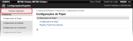 Quando altera as definições através do painel de controlo ou da Interface Remota, pode reiniciar a máquina com o interruptor de alimentação ou a Interface Remota.