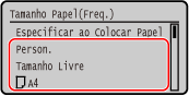 Quando está colocado um papel de tamanho não padrão (Tamanho personalizado)