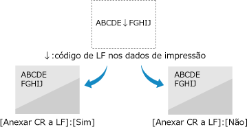Se selecionar [Não], a posição de impressão é deslocada para a linha seguinte, logo abaixo do código LF recebido.