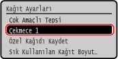 Varsayılan olarak, kağıt boyutu ve kağıt çekmecesinin türü, A4 ve Düz 2 olarak ayarlanır. Farklı bir boyut veya türe sahip kağıt yüklendiğinde, kağıt ayarlarını değiştirin.