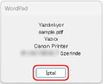 Yazdırma işlemini aşağıdaki prosedürü kullanarak iptal edebilirsiniz.