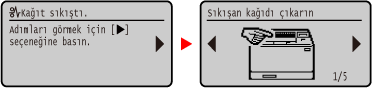 Sıkışan kağıdı makineden zorlayarak çıkarmayın.Kağıdın zorla çıkarılması, fiziksel yaralanmaya veya makinenin parçalarının hasar görmesine neden olabilir. Kağıdı çıkaramıyorsanız satıcınıza veya servis temsilcinize başvurun. Sorun Devam Ederse