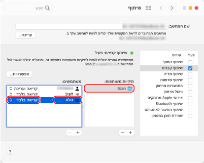 ב-[משתמשים], בחר [כולם] או  [קריאה ועריכה].