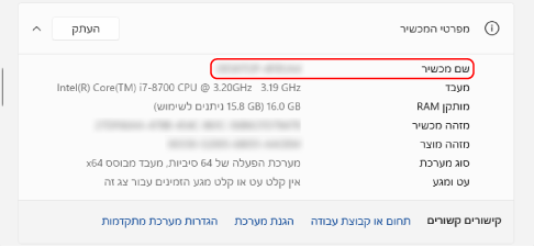 ב[מפרטי המכשיר], לראות את שם המחשב.