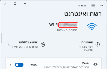 הציגו את המחרוזת בסוגריים ( ) של Wi-Fi.
