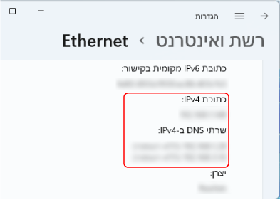 הצג את כתובת ה-IP, שרת ה-DNS ומידע אחר.