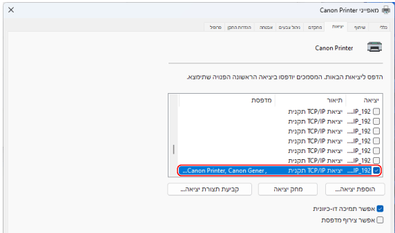 מסך מאפייני מנהל ההתקן של המדפסת מוצג.