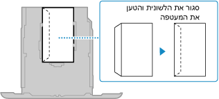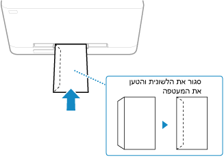 ניתן להדפיס מעטפות רק בצד הקדמי (צד לא מודבק). בעת הנחת מעטפות, שים לב לכיוון לפני הנחתן.