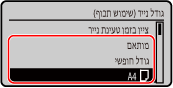 בעת שימוש בנייר בגודל או בסוג שונים מהנייר הרשום