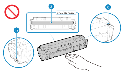 הקפד להחזיק את מחסנית הטונר בידית.