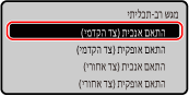 ניתן לציין את כיוון ההתאמה והרוחב עבור כל מקור נייר וצד הדפסה (הצד הקדמי והאחורי).