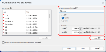 הזן את גודל הנייר ולחץ על [אישור].