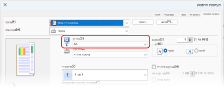 בחר בתיבת הסימון [התאם לגודל הנייר] וב- [גודל הנייר הנבחר], בחר את גודל הנייר להדפסה.