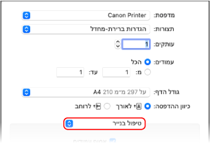 מתפריט אפשרויות ההדפסה הקופץ, בחר [טיפול בנייר].