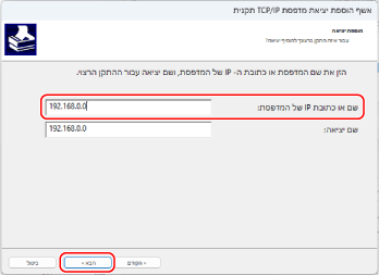 הזן את כתובת ה-IP או שם ה-DNS (שם מארח) ולחץ על [הבא].