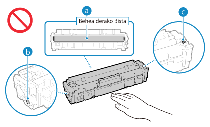 Kontuz ibili eta ez ukitu toner-kartutxoen azpialdean dagoen danbor-azala.