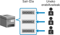 Esleitu sail IDak erabiltzaile eta taldeei erabilera-ingurunearen eta -helburuaren arabera. Gainera, sail ID batean PIN bat ezarriz gero, baimenik gabeko sarbidea saihestuko da, eta kudeaketa zorrotzago bat egingo.