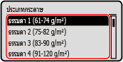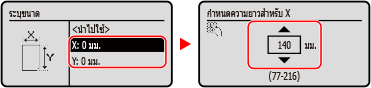 คุณสามารถลงทะเบียนขนาดกระดาษเมื่อใช้กระดาษที่ไม่ใช่ขนาดมาตรฐานบางขนาดบ่อยๆ คุณสามารถเรียกใช้กระดาษในหน้าจอป้อนขนาด ซึ่งจะช่วยให้คุณไม่ต้องยุ่งยากในการใส่ขนาด