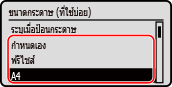 หากขนาดกระดาษที่ตั้งค่าไว้ไม่แสดงขึ้นมา