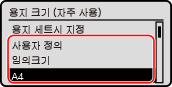 설정된 용지 크기가 표시되지 않는 경우