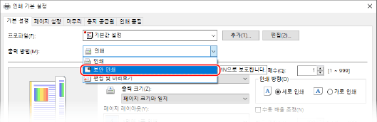 [출력 방법]에서 [비밀 인쇄]를 선택합니다.
