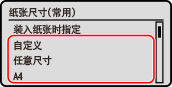 如果需要频繁更改装入的纸张,请设置为 [任意尺寸];这样可以减少每次更改设置时所需的步骤数量。但请注意,即使打印机驱动程序中的纸张类型设置与实际装入机器的纸张不符,此设置也会使机器执行打印。